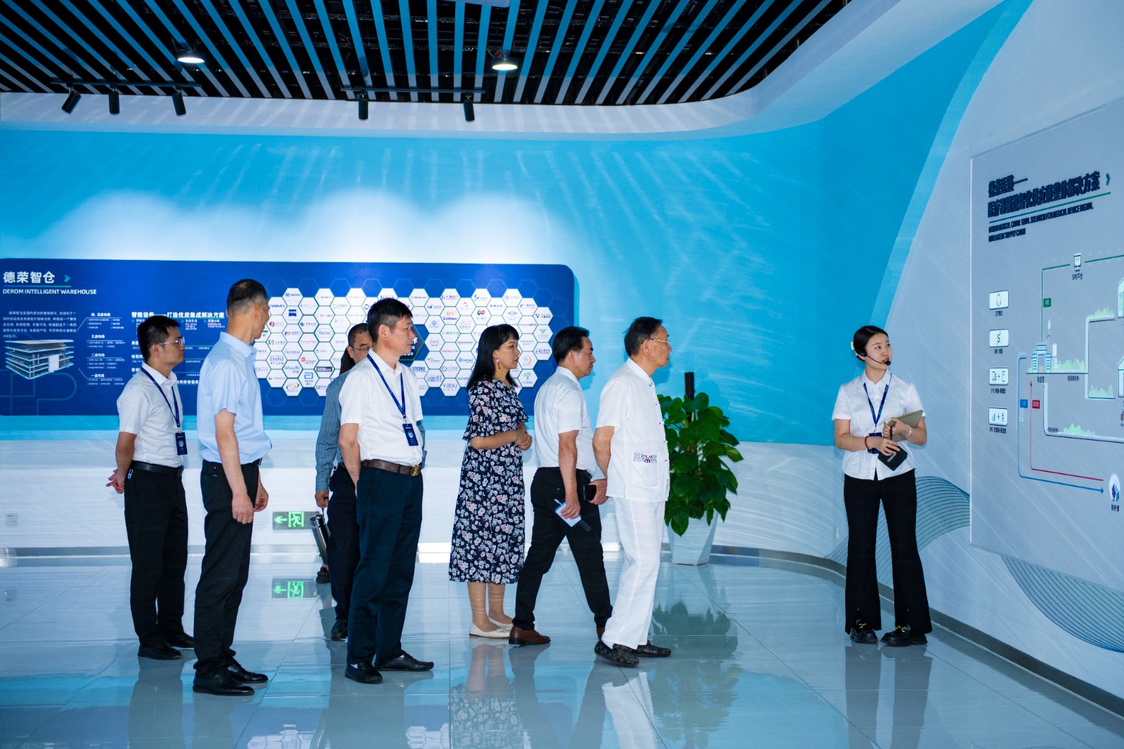 曾垂甲一行首先參觀了德榮數(shù)智科技館,聽取德榮醫(yī)療從醫(yī)療器械經(jīng)銷商轉(zhuǎn)變?yōu)獒t(yī)療器械供應(yīng)鏈運營商的發(fā)展歷程,以及德榮在供應(yīng)鏈服務(wù)、商業(yè)流通和器械研發(fā)生產(chǎn)三個方面的未來規(guī)劃。緊接著,考察團來到了湖南省面積最大的醫(yī)療器械單體倉庫-德榮智倉,實地觀摩了“一倉三庫”體系和SPD院外倉,詳細了解德榮醫(yī)療器械一體化供應(yīng)鏈(德榮醫(yī)鏈)的運營流程。